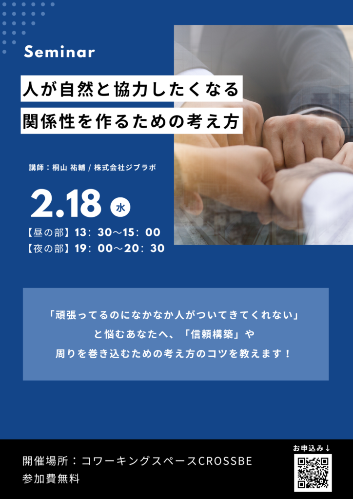2/18(水) トークイベント「人が自然と協力したくなる関係性を作るための考え方」セミナー